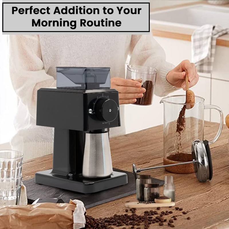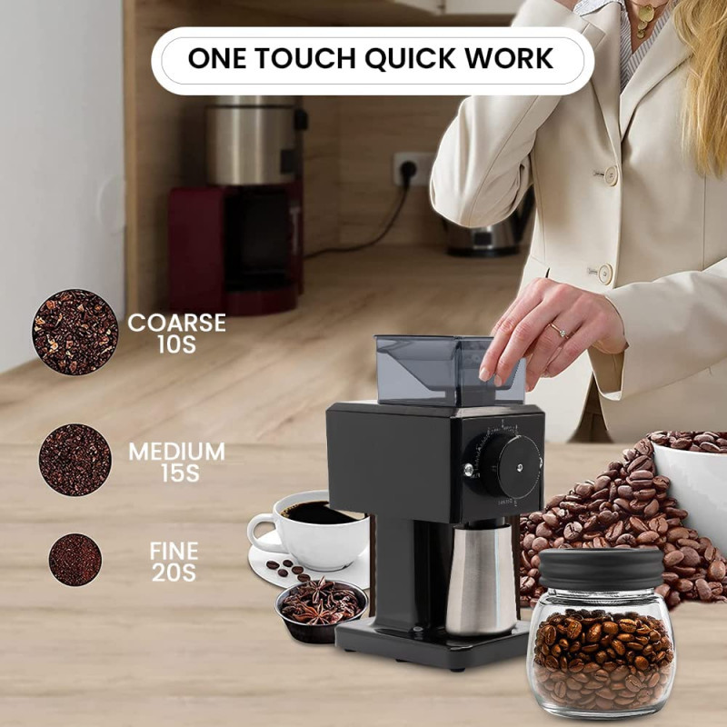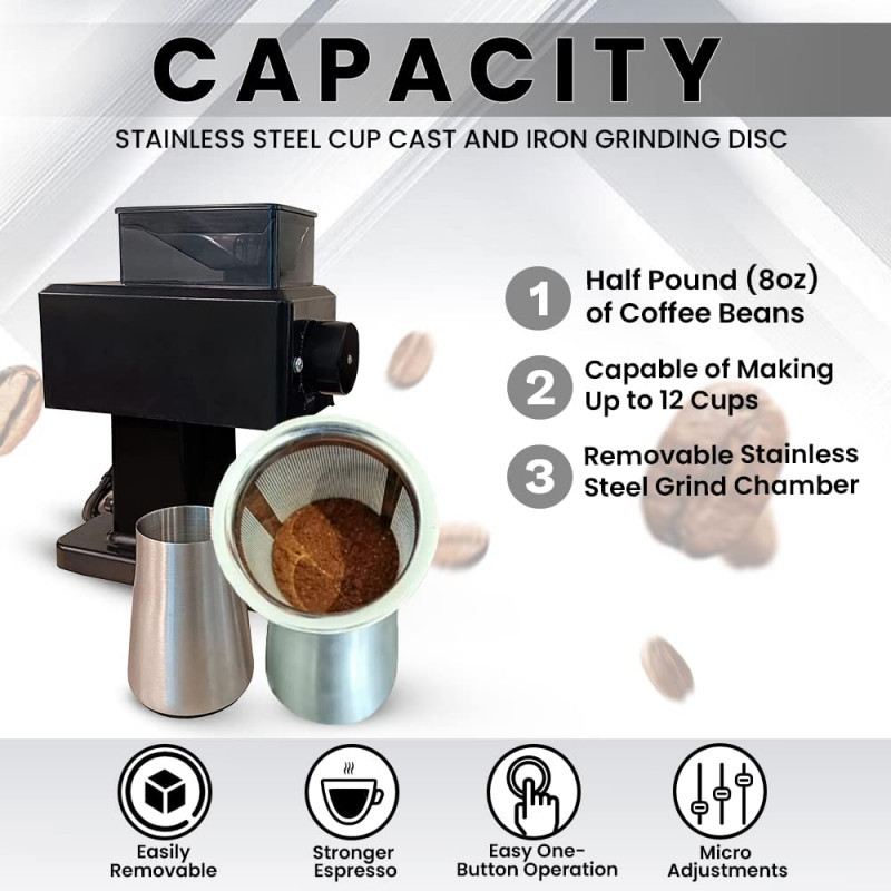 Molino eléctrico automático de grano de café de 8.82oz, máquina de 180 W con taza de acero inoxidable fundido y disco de molienda de hierro.