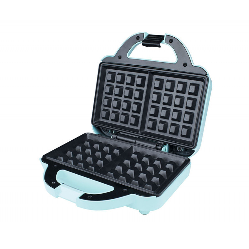Wafleradoble antiadherente de 1080w cocina dos gofres perfectos en 10 minutos.Cuenta con placas antiadherentes fáciles de limpiar, luces indicadoras de encendido / precalentamiento convenientes, cierre de seguridad contra sobrecalentamiento y almacenamiento vertical compacto.