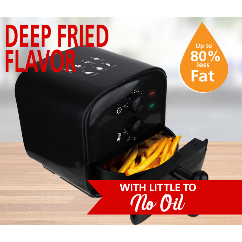 Freidora de aire eléctrica pequeña de 1 litro y potencia de 700 vatios fríe rápida y uniformemente con poco o ningún aceite.Haga crujientes papas fritas, aros de cebolla, alitas de pollo, verduras asadas y más.