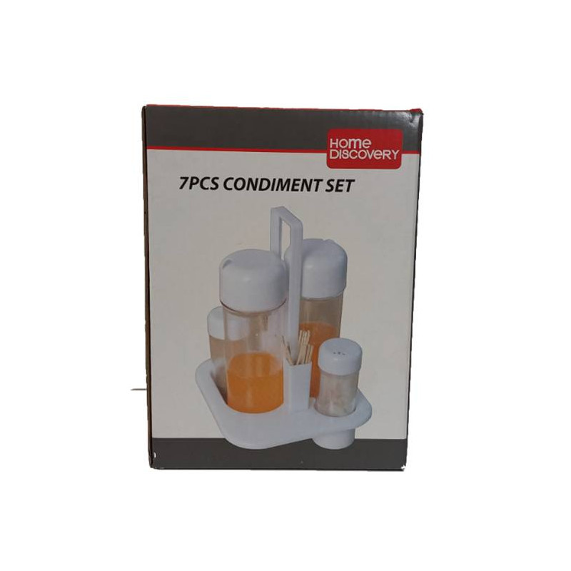 Juego de salero, pimentero, aceite y vinagre con rack incluido.