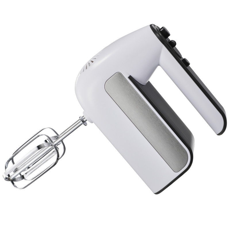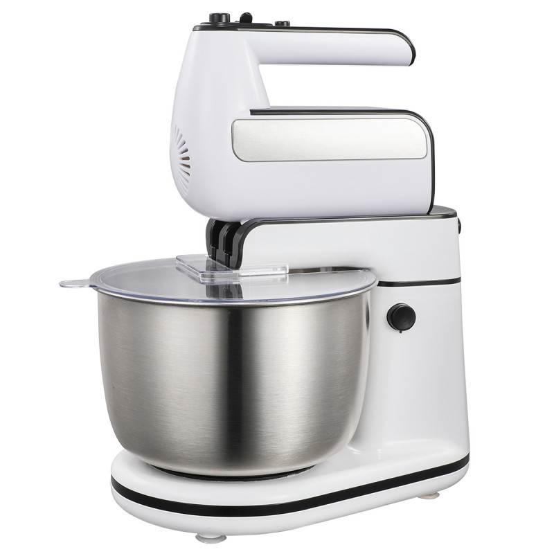 Batidora de pedesta y de mano 5-Velocidades + Turbo, Blanco y Cromo cabezal basculante regulable (subir y bajar).
